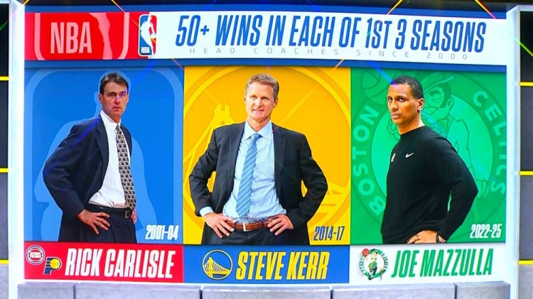 2025-03-19 16:16:46梦幻开局!生涯前3个赛季皆50+胜场的主帅:卡莱尔、科尔、马祖拉