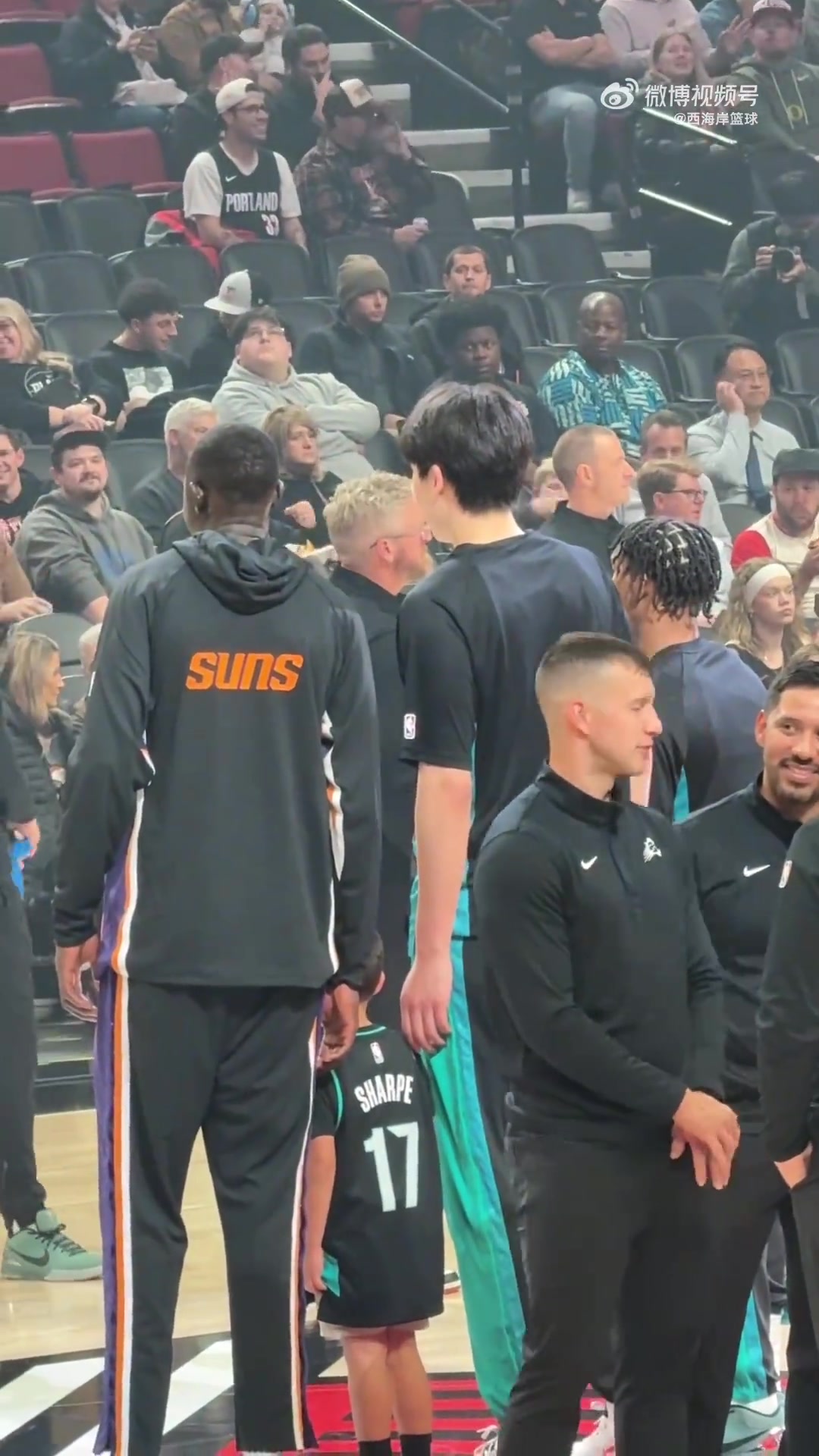 2025-11-19 16:09:04各为其主情谊不变!杨瀚森赛前跟好兄弟马卢阿奇合影并拥抱致意